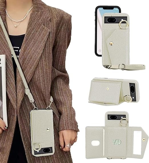 Google Pixel 10 ケース 手帳型 ピクセル10 Pro ケース 手帳型 グーグルピクセル10 財布型 ショルダー 背面カード収納 化粧鏡 スマホケース Googleピクセル10 ピクセル10携帯カバー GooglePixel10ケース スタンド機能 ストラップ 肩掛け 鏡付き - ホワイト a
