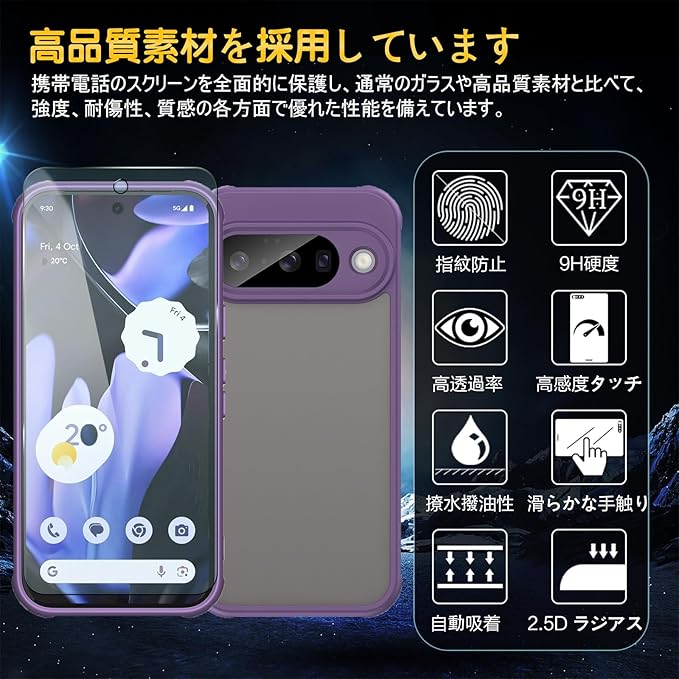 【2枚入り】For google pixel 10 pro xl 保護フィルム 指紋防止 硬度9H 高透過率 高感度タッチ 自動吸着 気泡防止 耐衝撃 飛散防止 反射防止 スクラッチ防止 ガラスフィルム a