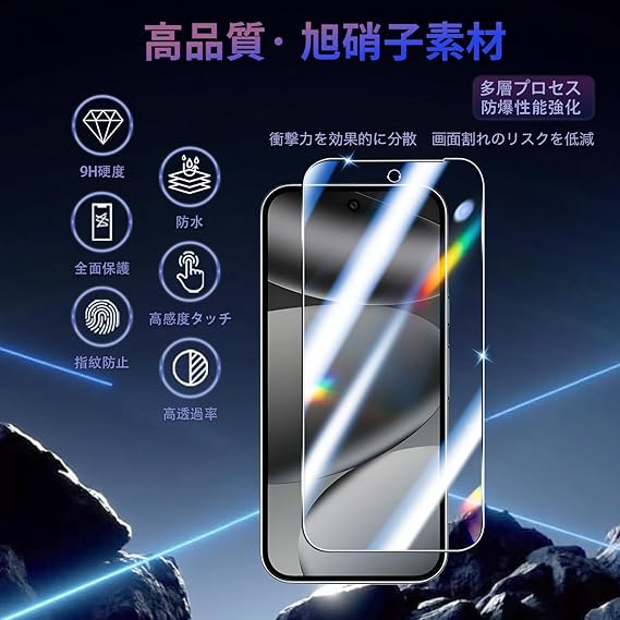 【9H硬度・全面被覆・飛散防止】携帯 Google Pixel 10pro xl 用 フィルム及びレンズ保護フィルムは国産AGC旭硝子ガラスを使っており、ガラス420°高温強化時間6時間、二次強化を使用して、硬さは業界トップレベルの9Hに達しました。本体の端を完全に覆い、液