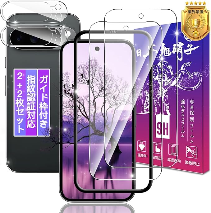 対応 google Pixel 10 Pro XL ガラスフィルム 2枚 + レンズフィルム 2枚 6.3インチ 【ガイド枠付き 指紋認証対応】 対応 pixel10ProXL フィルム グーグルピクセル10プロ XL 用 保護フィルム ケース カバー 高透過率 硬度9H 飛散防止 指紋認証対応 3D 高感度タッチ 気泡防止 耐指紋 ラウンドエッジ加工 簡単貼り付け FAMROLLS正規品 a
