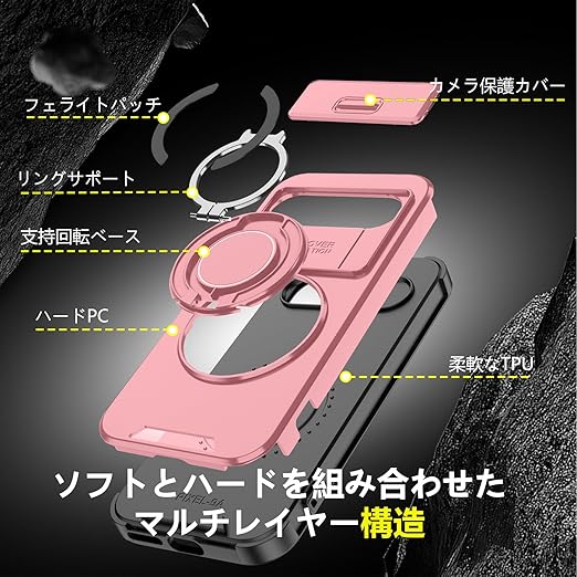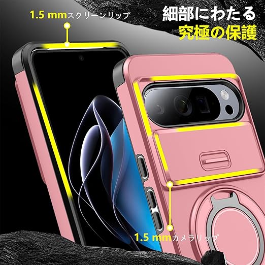 Google Pixel 10 Pro XL 用 ケース Magnetic対応 スタンド付き リング付き 耐衝撃 レンズ保護 スライドカメラカバー TPU+PC 軽量 滑り止め 落下保護 スタンド機能 車載ホルダー対応 ピクセル 10 プロ XL 携帯ケース ピンク R-LK-GP10PXL-05 a