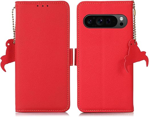 Google Pixel 9 Pro XL ケース 手帳型 本革 グーグル ピクセル10 プロ XL 財布型 高級牛革 放熱性 シンプル手帳カバー 便利なマグネット式 カード収納 容量 3枚 衝撃吸収 横向きスタンド機能 [RFIDブロッキング] 携帯カバー レッド a