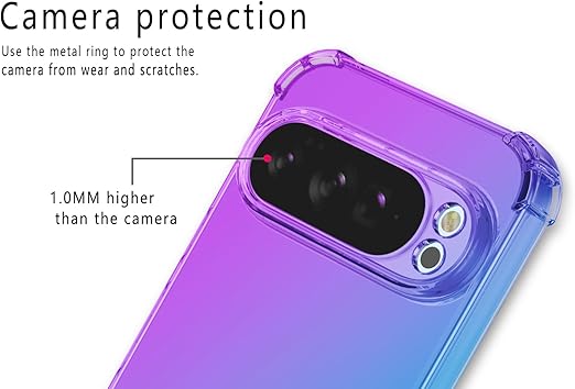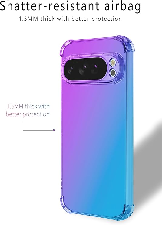 Google Pixel 10 Pro XL対応ケース グラデーションカバー 四角エアクッション 耐衝撃 Google Pixel 10 Pro XL適用クリアTPUソフトケース 全面保護 軽量 落下防止透明保護カバー ブルー&パープル a