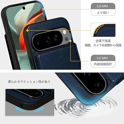 Shlybaay Google Pixel 10 ケース 背面 手帳型 カードケース Pixel 10 pro 手帳型ケース カード収納 ピクセル 10 スマホケース 磁石吸着 落下保護 写真入り 軽量 T1 ブルー a