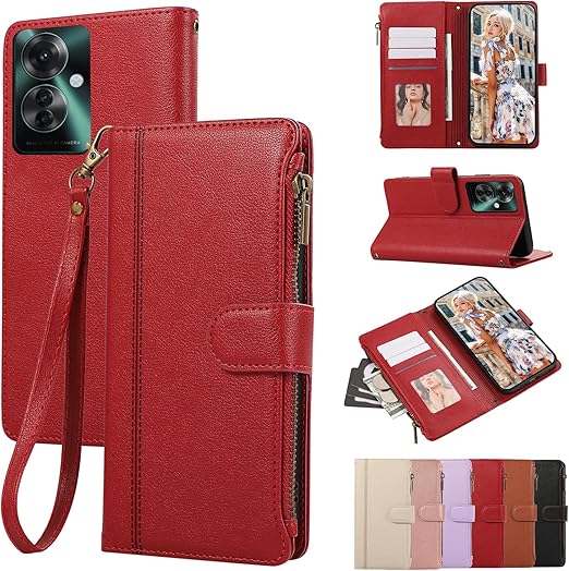 KW-LINK OPPO Reno11 A ケース 手帳型 CPH2603 ケース 小銭入れ ファスナー型 オッポリノ11 A 携帯カバー コインポケット カード収納 財布型 おっぽ ネノ11 A カバー スタンド機能 マグネット式 オツポreno 11a ケース 手帳型 OPPO Reno11 A スマホケース 同色ストラップ付き 薄型 耐衝撃 - レッド a