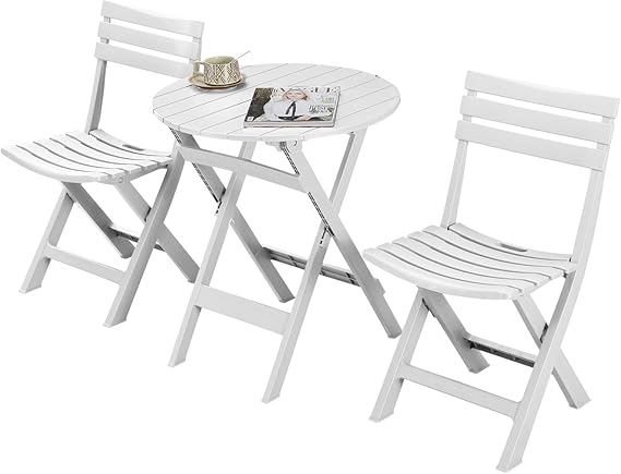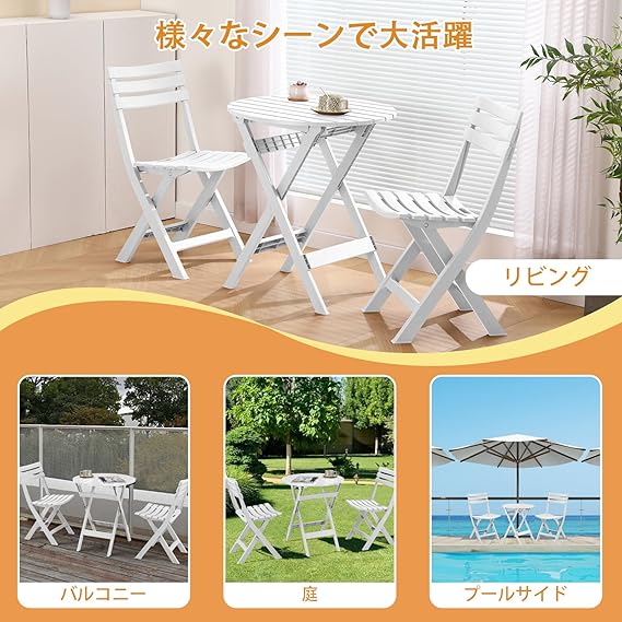 BOOSDEN ガーデンテーブル 3点セット アウトドア 折りたたみ 椅子テーブルセット ベランダ バルコニー 椅子セット 室内/屋外 庭 イベント 白色 a