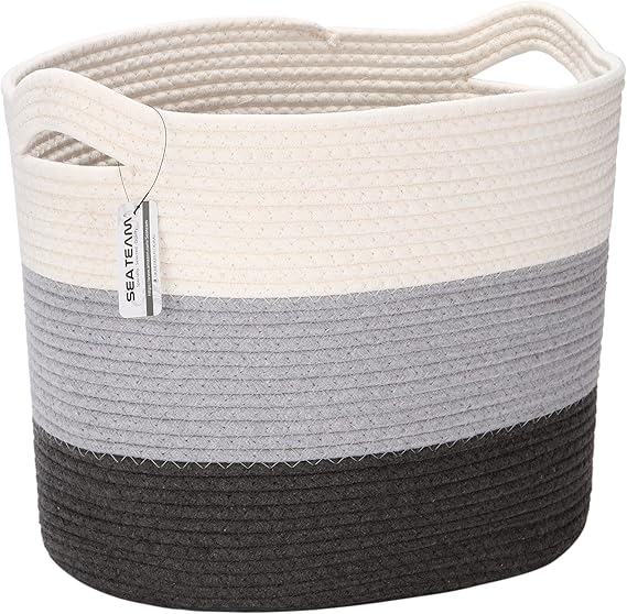 ハンドル付き:両側に取っ手が1つずつあります。精巧な取っ手付きで、簡単に持ち運ぶことができます。リサイクル可能なコットンロープをコイル状に巻いて縫い合わせ、安全で柔らかく、丈夫で肌に優しい収納対策を提供します。