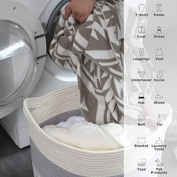 大きいサイズロープバスケット:約40Lの大容量、収納能力が抜群!収納バスケット枕、毛布、おもちゃ、衣類、書類などが適用し、幅広く使えます。バラバラの空間をきれいに片付けられます。