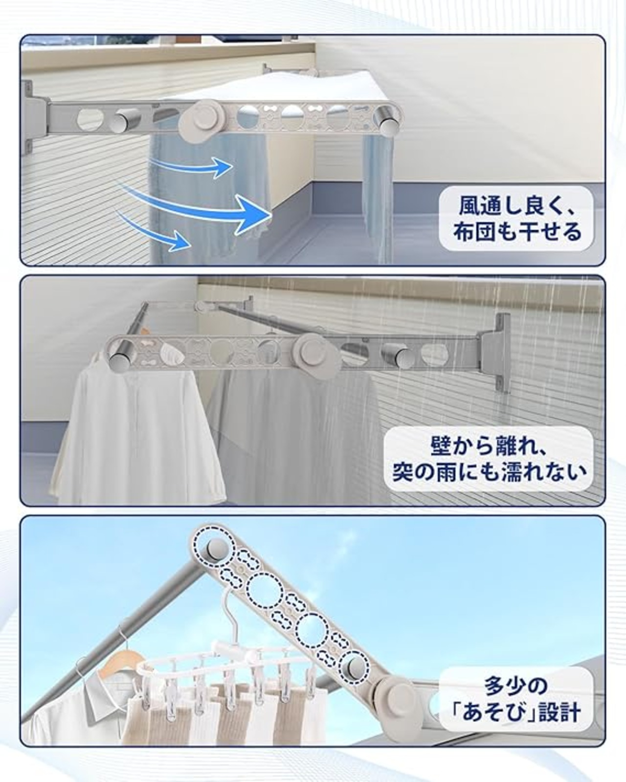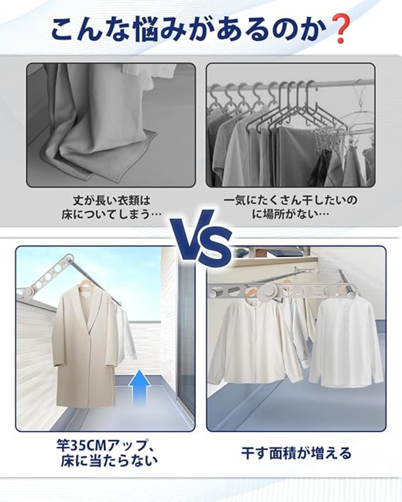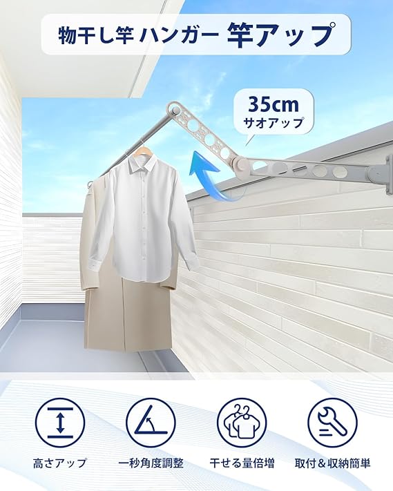 【最新型・竿アップ35cm】CARTIST 物干し竿 ハンガー 延長バー 竿アップ35cm ベランダ 洗濯物干し 壁掛け 屋外 延長アーム ベランダ用物干し 洗濯物干しスタンド タオル干し 高さ1秒調節 マンション 頑丈 設置簡単 簡易説明書付き a