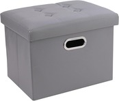 オットマン スツール 【整理収納のプロも推薦!】 折りたたみ式 耐荷重120kg 収納 足置き 椅子 ボックス 持ち運びに便利 フットレスト ふた付き 取っ手付き mugenbo 日本ブランド (PUレザーグレー, 42×32×32) a
