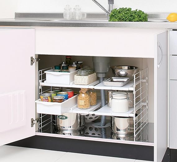 アイリスオーヤマ シンク下 マルチ伸縮棚 2段 幅45~70×奥行39.5×高さ39.5~43.5cm ホワイト UMD-2V a