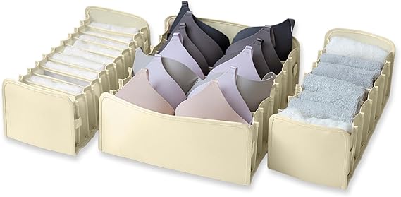 下着収納ボックス 下着収納ケース【整理収納のプロ推薦 引き出しに合わせて調整できる伸縮式】衣類 靴下 小物 収納 引出し 仕切り ケース クローゼット 引出し 棚 おしゃれ 防塵 防湿 通気 収納用品 3点セット (シャンパンイエロー,別型3点セット) a