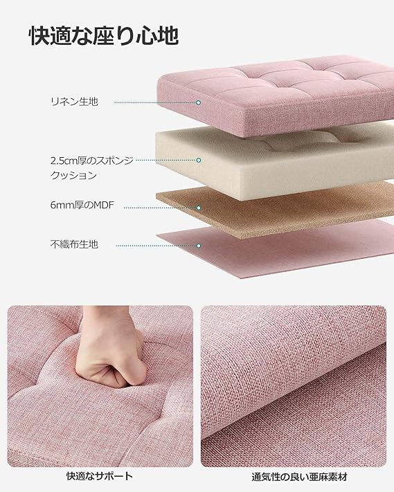 【快適な座り心地】座面には2.5CM厚のスポンジクッションと通気性の良い亜麻素材を使用しており、柔らかく快適な座り心地を提供します。くつろぎの休憩や一時的な座席として使用する際も、快適な感触をお楽しみいただけます。