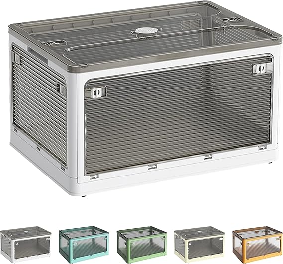 Freely 多機能折りたたみ収納ボックス 積み重ね可能 蓋付き 大容量 キャスター付き 防塵防湿防虫 ABS樹脂 家庭用/車載/アウトドア対応 5面開閉式 簡単組み立て 衣類・布団・本・食品収納 S(44.5×31.5×26) cm,36.5L a