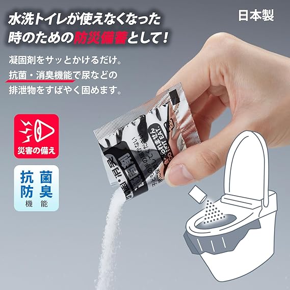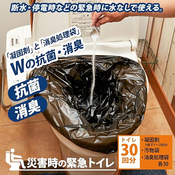 断水・停電時などの緊急時に水なしで使える簡易トイレ。