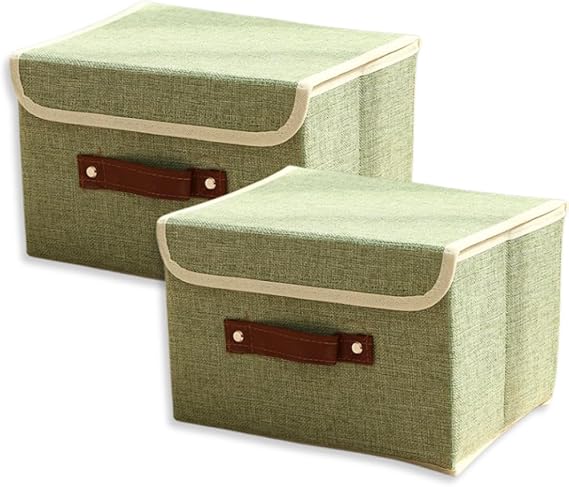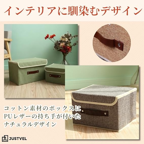 JUSTVEL 収納ボックス 蓋付き 折り畳み 整理箱 取っ手付き 布 北欧 おもちゃ 折りたたみ 衣類 雑誌 おしゃれ 2個セット (グリーン) a