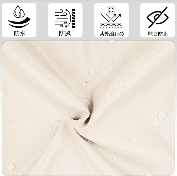 【撥水効果のシェードです】。突然の雨にも大丈夫で傘のように雨水を弾くので、夕立ちなど急に雨が降ってきた場合でも、雨よけになり濡れずに安心です。
