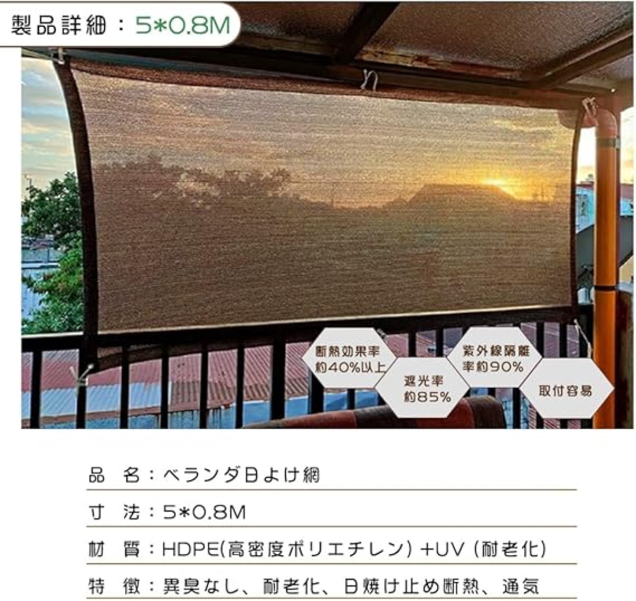 Haikawi ベランダ 目隠し シェード 80x500cm バルコニーシェード 目隠し フェンス UVカット 風通しも良い家 窓 ベランダ 快適空間 プライバシー保護目隠しシート 日よけに目隠しに大活躍(結束バンド30本付き、固定用ロープ2本付き) a