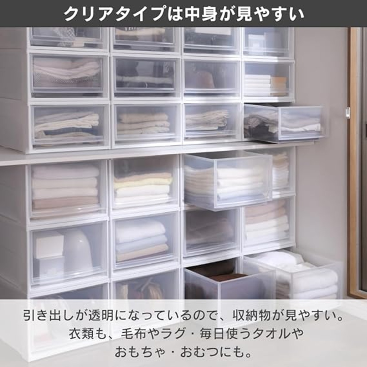 収納の目安:Tシャツなら12枚、セーターなら4枚、バスタオルなら6枚