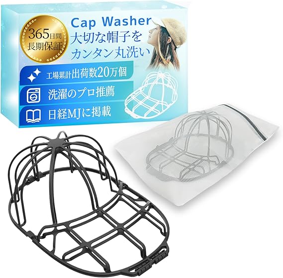 キャップウォッシャー【日本正規品】【現役クリーニング師推薦】 帽子 型崩れ防止 【日経MJ掲載】洗濯機 【洗濯ネット付】野球帽ウォッシャー 大人用 子供用 洗濯機 ラック簡単 収納 吊り下げ収納 (ブラック) Black a