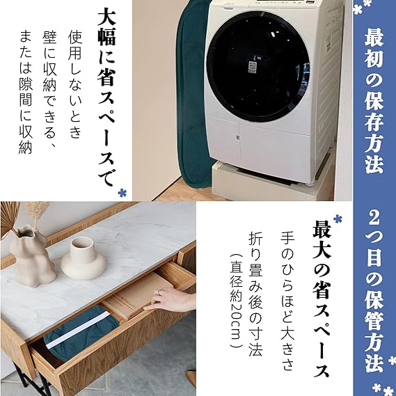 【軽量かつ省スペースで大容量】- 製品は折りたたんだ後、直径約20センチ、高さ約3センチの単純な平面状の円形になり、持ち運びが簡単です。開いた後のサイズは58×36×36センチで、収容量は約70リットルです。この汚れた衣服入れは、壁や洗濯機の隙間、引き出し、
