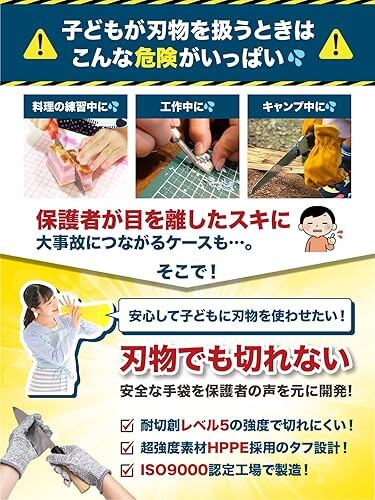 [Liferinger] 軍手 防刀手袋【現役防災士監修】 作業用手袋 大人 子供用 【回転刃を20回以上往復しないと切れない耐切創レベル5だから刃物から手を守ってくれる】長持ちタイプ 料理補助 工作 防災用 DIY 手袋 a