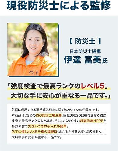 [Liferinger] 軍手 防刀手袋【現役防災士監修】 作業用手袋 大人 子供用 【回転刃を20回以上往復しないと切れない耐切創レベル5だから刃物から手を守ってくれる】長持ちタイプ 料理補助 工作 防災用 DIY 手袋