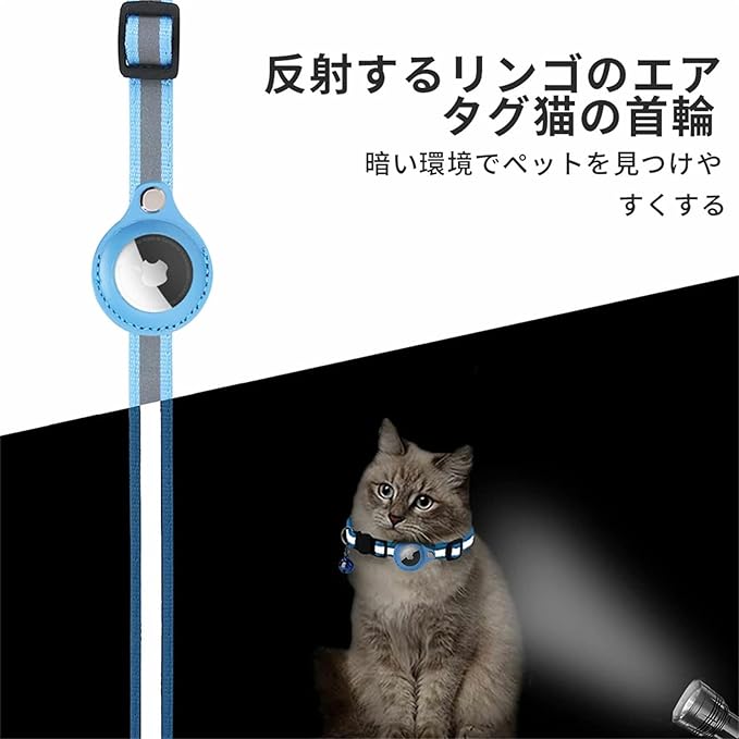 Airtag gpsペット 追跡装置 エアタグ 首輪 猫用首輪 安全首輪 猫用 小型犬用 首輪 gpsペット スマホ対応 調節可能 頑丈耐用 光反射のデザインを加えて 軽量 耐衝撃 防水 防塵 紛失防止 洗濯可能 (ブルー) a