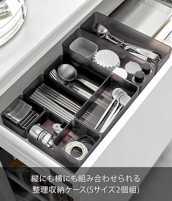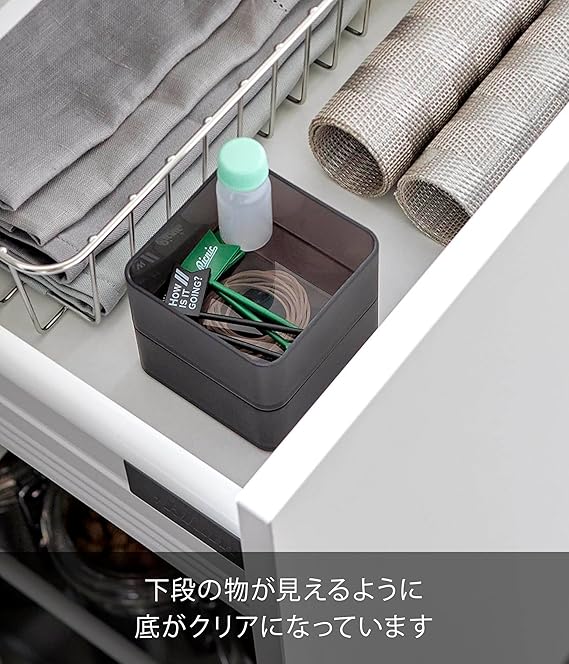 山崎実業(Yamazaki) 底がクリア 縦横重ねられる 引き出し整理収納ケース S 2個組 ブラック 約W8×D8×H3.7cm タワー tower カトラリー収納 デスクトレー 組み合わせ自在 3641 a