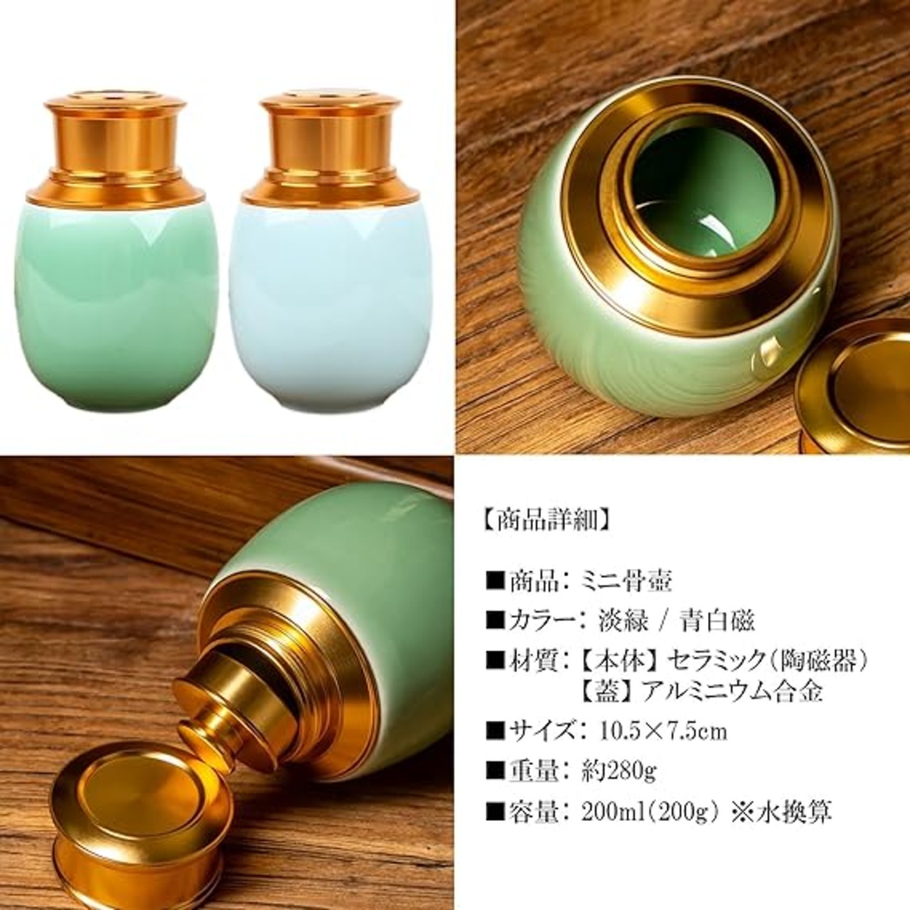 NOELAMOUR ミニ骨壷 分骨用 骨壺 ミニ 手元供養 遺骨入れ 陶器製 仏壇 仏具 納骨 分骨 容量200g (青白磁) a