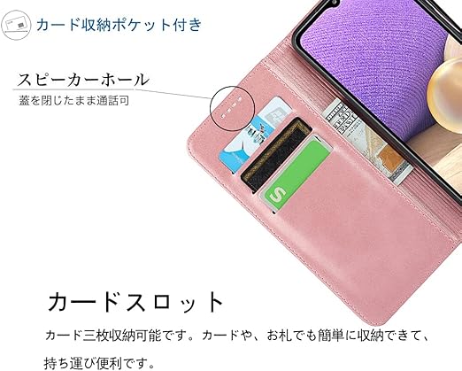 【収納ポケット】このカバーケースは、カードケースに3つのカードスロット、お金や追加カード用のサイドポケット、効果的でスタイリッシュな磁気ロックデザインのセキュリティ機能を備えてい