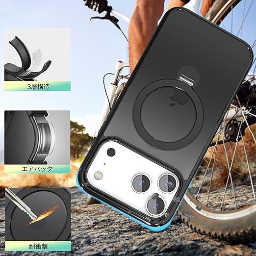 【360度回転可能・角度自由自在・半透明美学】 アイフォン17 Pro Max 用ケースの背面には、金属製造で360°回転可能なスタンドを革新的に設計されており、とても薄いのにしっかりとした造りで、好きな角度で固定できる。上下に 120°の多角度自由に調整できます、縦置きでも横置きでも安定して支えられます。仕事中のビデオ会議『縦置スタンド』、映画鑑賞『横置スタンド』、ゲームをしたり、写真を撮ったり、リングとしても利用で