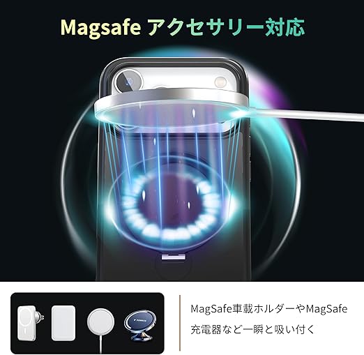 【超絶安定性ゼンマイ式】ハット iPhone 17 Pro Max用 ケース 360度回転スタンド 半透明感 耐衝撃 縦横両対応 マグネット搭載 [隠しスタンド&MagSafe対応&リング]アイフォン17 Pro max用 ケース 指紋防止 黄変防止 6.9 インチ ブラック a