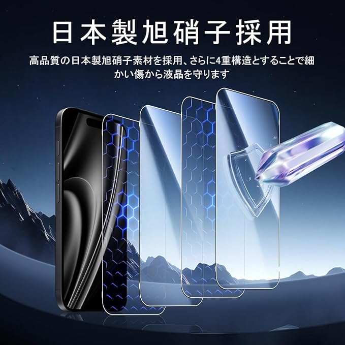 対応 iPhone 17 AIR ガラスフイルム 用の ガイド枠付き 【 iPhone17 air フイルム(2枚入り) + カメラフィルム(2枚入り)+ ガイド枠 】 いpほね17air 強化ガラス 液晶 アイフォン 17AIR 保護フィルム 国産旭硝子素材 撥油性 超耐久 高光沢 超薄型 硬度9H 指紋防止 衝撃吸収 高透過率 飛散防止 貼り付け簡単 気泡なし 極薄 JCJCLY-IP17AIR a