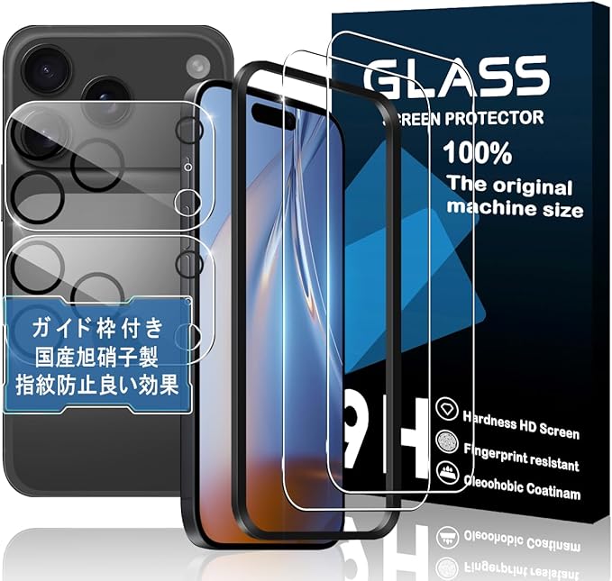 対応 iPhone 17 Pro ガラスフイルム 用の ガイド枠付き 【 iPhone17pro フイルム(2枚入り) + カメラフィルム(2枚入り)+ ガイド枠 】 いpほね17プロ 強化ガラス 液晶 アイフォン 17pro 保護フィルム 国産旭硝子素材 撥油性 超耐久 高光沢 超薄型 硬度9H 指紋防止 衝撃吸収 高透過率 飛散防止 貼り付け簡単 気泡なし 極薄 JCJCLY-17PRO a
