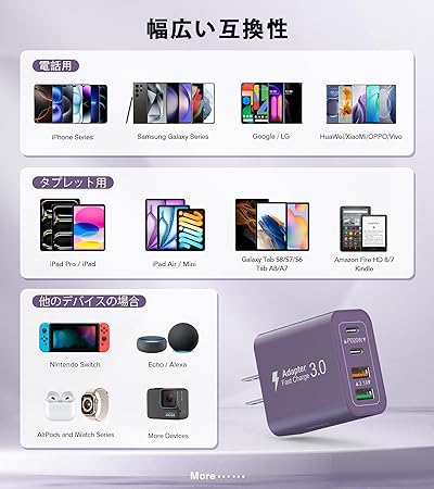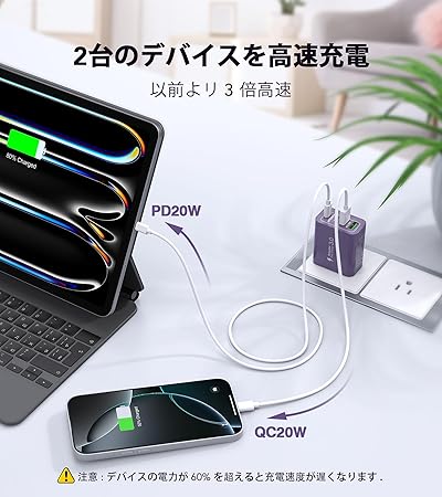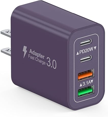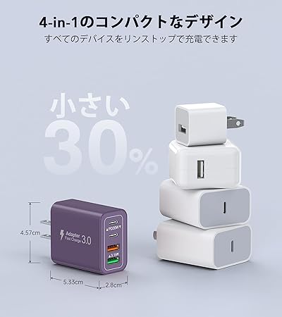 iPhone 17 充電器 20W PD USB 急速充電 【PSE技術基準適合/旅行に最適】ACアダプター スマホ充電器 USB 電源タップ iPhone、 iPad 、Android、Galaxy、Xiaomi、HuaWei各種対応(パープル) a