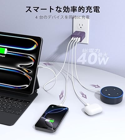 【マルチポートUSBコンセント】:タイプc 充電器は、デュアル USB-C ポートとデュアル USB-A ポートがあ