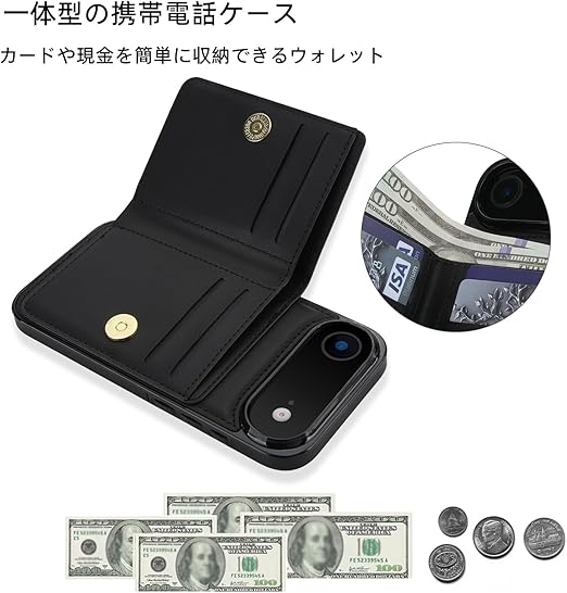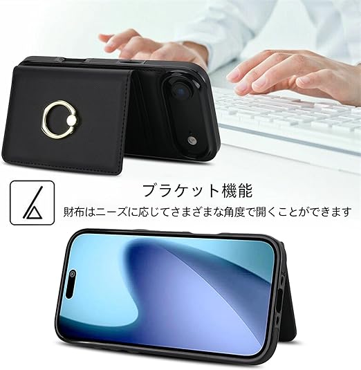 Noaivoky 適用 iPhone 17 Air ケース 手帳型 アイフォン17 エア ケース 背面カード収納 リング付き スマホケース いphone17air 財布型 スタンド機能 携帯カバー 17 air PUレザー RFIDブロック機能 おしゃれ あいふおん17エア カバー 防水 耐摩擦 耐衝撃 アイホン17 エア カード リング - ブラック a