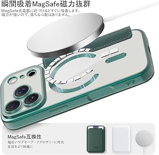 「MagSafe対応専用・強力な磁力吸着!」携帯をもっと便利に使いたいのですが、MagSafeに影響しないケースはありますか?これを試してみて! ケース内部は38個強力なマグネットを搭載、超吸着能力でいくら振っても落ちない。ワイヤレス充電だけでなく、Magsafe対応スタンド&リングも対応、リラックスした生活に重宝する。
