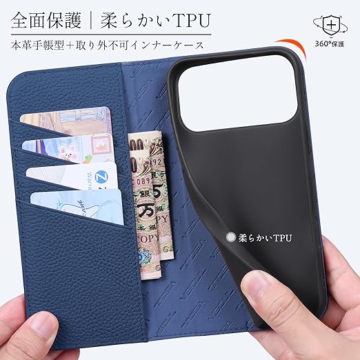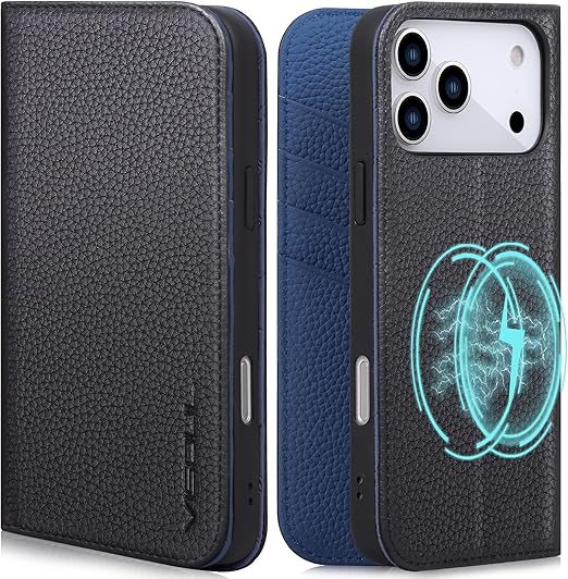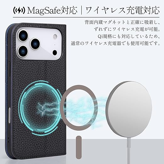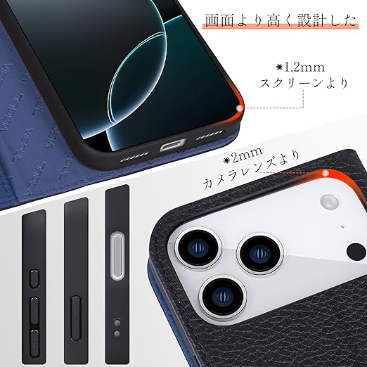 VISOUL iPhone 17 Pro Max 対応 ケース 手帳型 本革 アイフォン17 プロマックス 手帳型ケース MagSafe対応 スマホケース レザー カード収納 携帯カバー 横置きスタンド機能付き マグネット式 全面保護 柔軟なTPU素材 アイホン17 ProMaxブラック・ネイビー a