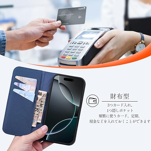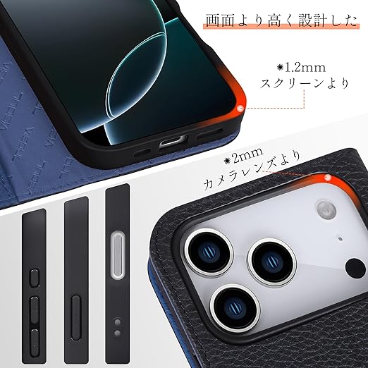 VISOUL iPhone 17 Pro 対応 ケース 手帳型 本革 アイフォン17 プロ 手帳型ケース MagSafe対応 スマホケース レザー カード収納 携帯カバー 横置きスタンド機能付き マグネット式 全面保護 柔軟なTPU素材 アイホン17 Pro ブラック・ネイビー a