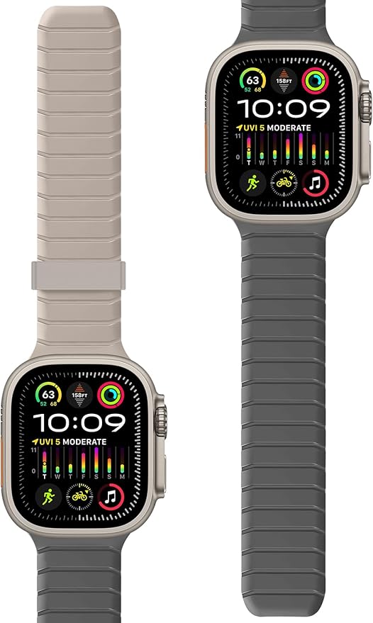 両面リバーシブルストラップ対応 Apple Watch 49mm 46mm 45mm 44mm 42mm ソフトシリコンスポーツストラップループ iWatch Ultra 3 2 1 SE シリーズ 11 10 9 8 7 6 5 4 3 2 1用,ベージュ-グレー a