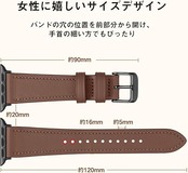 対応機種:(130mm-190mm)の手首にフィットします。iWatch Series 11/10/9/8/7/6/5/4/3/2/1/SE/SE2/SE3に対応しています。バンドの最小幅は16mmで、小さい穴が11つ開いているため、女性の方々にぴったりのサイズ感があり、大人女性に人気のスリム仕様です。エレガントなデザインで、まるでアクセサリーのように手首を細く見せ、フェミニンな外観を演出します。