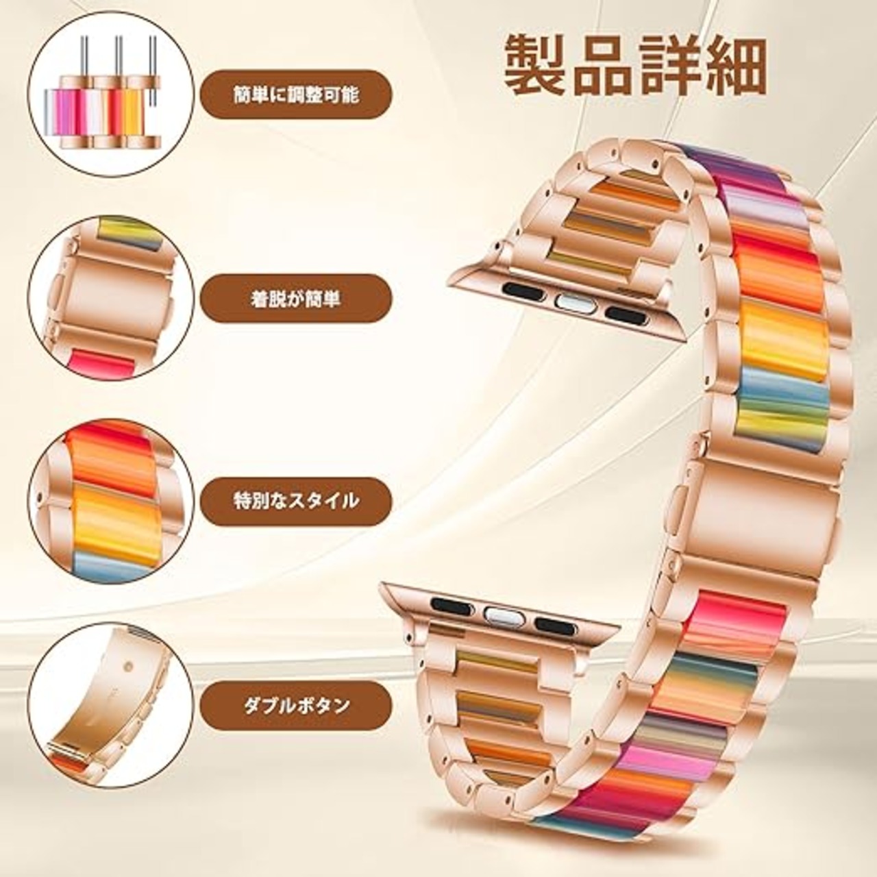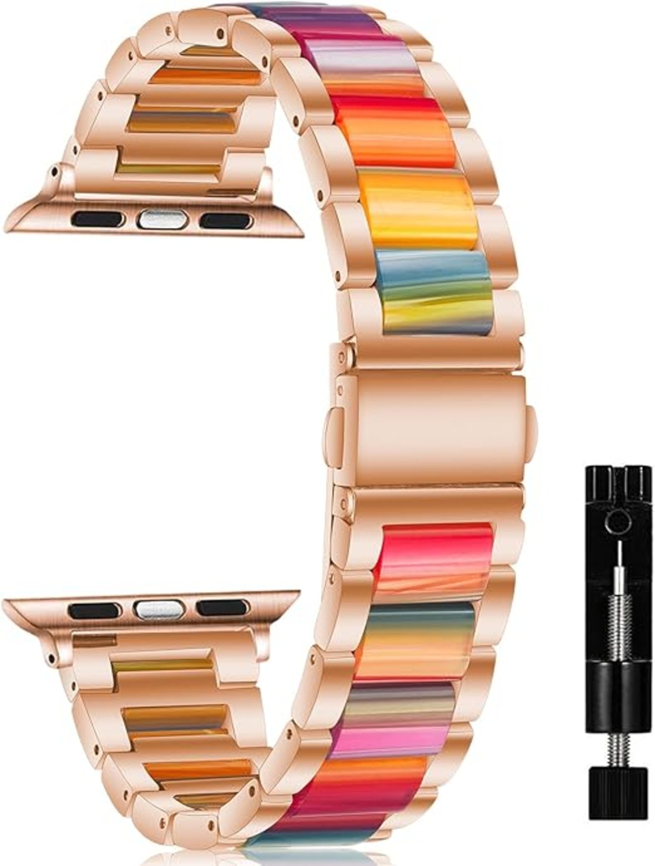 [CeiBand] アップルウォッチバンド Apple Watch バンドコンパチブル 42mm/41mm/40mm/38mm 樹脂+合金ステンレスストラップバンド腕時計バンド iWatch Series 10/9/8/7/6/5/4/3/2/1/SE 3 40mm/SE/SE 2 対応 交換ベルト 調整ツール付き 防水 (レインボーカラー) a