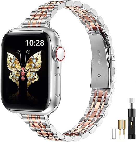 [MioHHR] スリムメタルバンドは、アップルウォッチバンド49mm 46mm 45mm 44mm 42mm(シリーズ3/2/1) と互換性のある女性のiWatchバンドシリーズ11 10 9 8 7 6 5 4 SE3 SE2 SE Ultra 3/2/1 ステンレススチールチェーンストラップ a