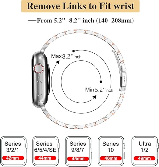 対応機種: アップルウォッチストラップは49mm(Ultra 3/2/1)46mm(シリーズ11/10) 45mm(シリーズ9/8/7)、44mm(シリーズ6/5/4/SE3/SE2/SE)、42mm(シリーズ3/2/1)に対応します。女性や女性、レディースやガールズ
