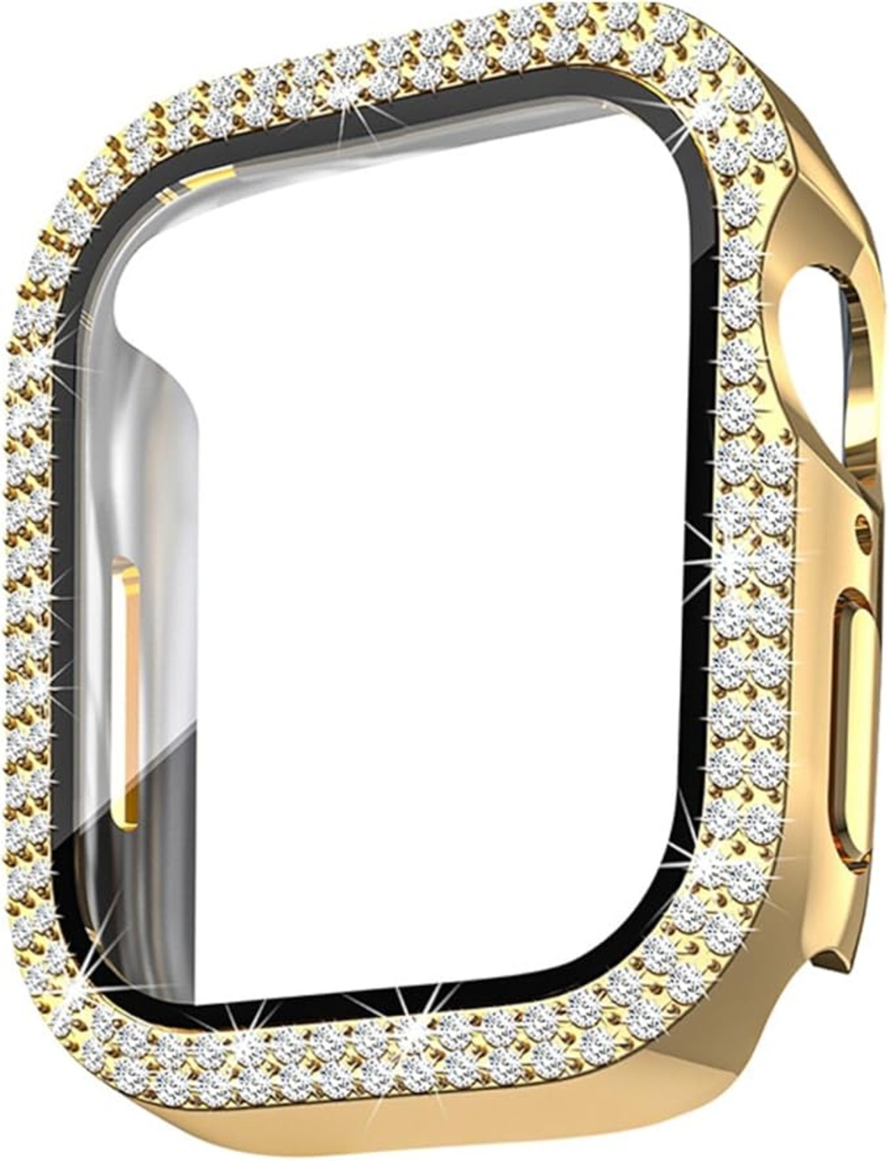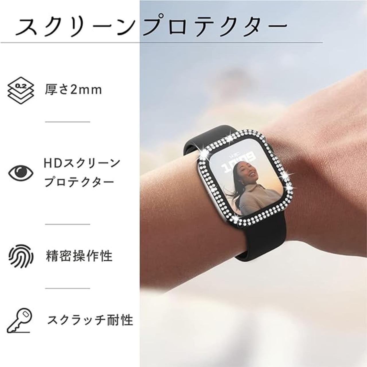 アップルウォッチシリーズ4/5/6/7/8/SEに対応するカバーケース。キラキラストーンが埋め込まれおり、つけるだけで華やかさアップ!ケース幅40mm、41mm、44mm、45mm、46mm、42mmのシリーズ10に対応