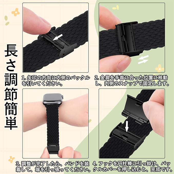 [Sunhel] コンパチブル アップルウォッチ Apple Watch バンド 49mm 46mm 45mm 44mm 42mm 41mm 40mm 38mm ナイロン素材 無段階調節 伸縮 スポーツバンド 高通気性 対応 Apple Watch Ultra SE Series 10/9/8/7/6/5/4/3/2/1 a