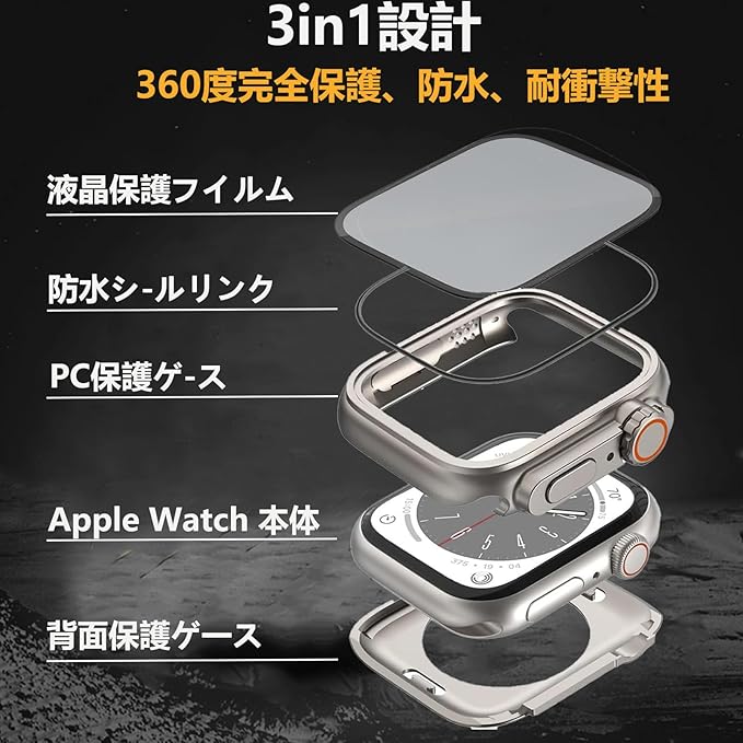 AIYYXX アップルウォッチ カバー Series 11/10/9/8/SE3/SE2/SE/7/6/5/4 46mm対応 数秒でUltra一体型 アップルウォッチ保護ケース+防水ゴムリング+背面ケースの3 in 1デザイン 360°防水 全面保護 耐衝撃 高透過率 装着簡単 apple watch カバー(Series 11/10,46mm,チタンゴールド) a
