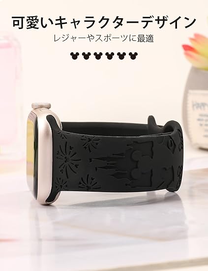 [Girovo] Apple Watch バンド/アップルウォッチ バンド 49mm 45mm 44mm 42mm, あっぷるうぉっちキャラクターバンド Apple Watch 9可愛い おしゃれ シリコン交換ベルト 萌え 女性 レディース 人気 for iWatch Series 9/8/7/6/5/4/3/2/1/SE/Ultra/Ultra 2(ブラック) a